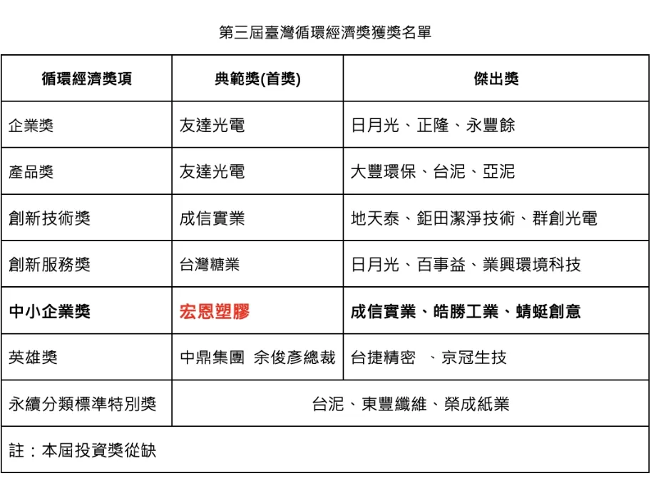 榮獲第三屆臺灣循環經濟獎【中小企業典範獎】