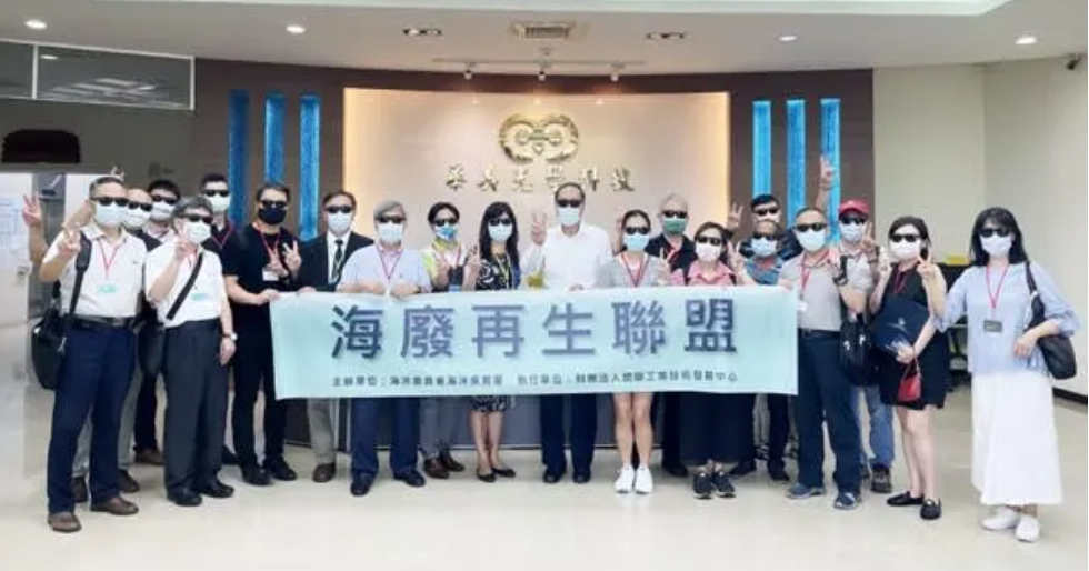 海委會海保署於昨(廿四)日邀集海廢再生聯盟成員辦理「海廢回收再利用技術及推動策略研討會」,藉由實體參訪再利用機構(億薈塑膠企業有限公司)回收廢棄漁網製成尼龍回收再生料,交予供應商(華美光學科技股份有限公司)製成海廢再生眼鏡,結合企業品牌力量以高質化產品促進廢棄漁網循環再生。(見圖)