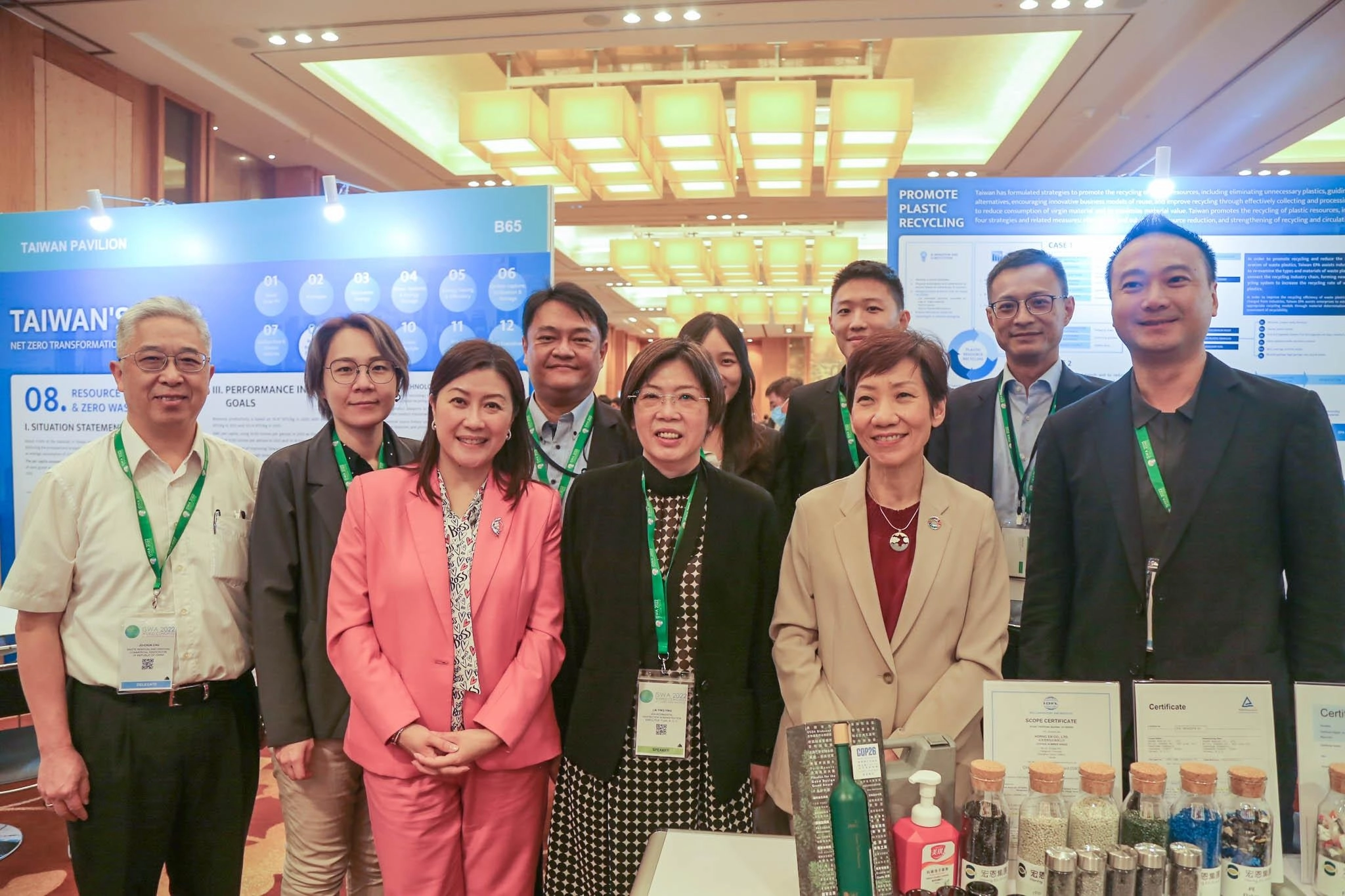 為促進台灣與國際資源循環議題的交流與合作,環保署組團參展2022 ISWA,台灣館主要介紹「資源循環零廢棄」政策,展現台灣淨零轉型規劃及相關成果,分享資源循環零廢棄戰略計畫;這次共有12家台灣廠商參展,涵蓋塑膠回收再利用、焚化機機電維運等領域。